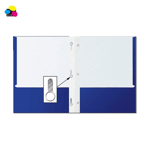 Blu marino di Colore Lettera Formato Carta Patinata Disponibili Due tasca Portafogli Cartella di File con 3 In Metallo Prong Fastener